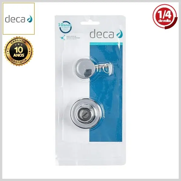 Os acabamentos de registros da Deca Metais são compostos por canoplas e volantes, produzidos com ligas de cobre (bronze e latão) e plásticos de engenharia, com acabamento cromado ou com opção de cores.