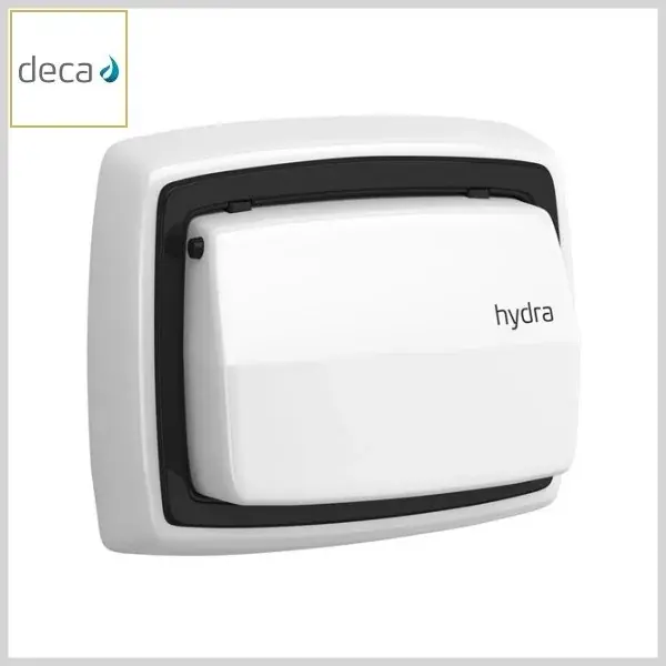 Produto com acionador e canopla em metal na cor branca, sendo indicado para acabamento e acionamento de bases de válvulas de descarga da linha original HydraMax (1.1/4 e 1.1/2pol).