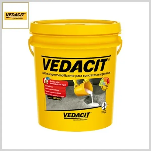 Vedacit é um aditivo impermeabilizante para concretos e argamassas, que age por hidrofugação do sistema capilar e permite a respiração dos materiais, mantendo os ambientes salubres.