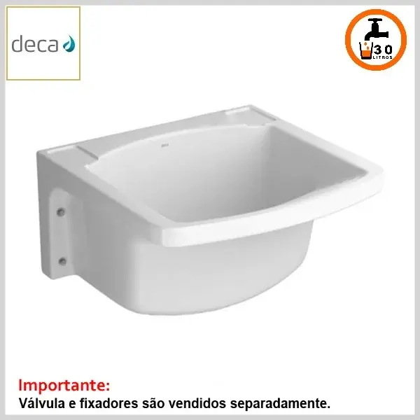 Produto confeccionado em material cerâmico esmaltado, sendo indicado para utilização em lavanderias e áreas de serviço. O produto pode ser instalado com coluna de apoio Deca ref.CT-25 (fixada no piso) ou sem coluna, desde que sobre parede de alvenaria e com o uso do conjunto de fixação FT-11, adquiridos em separado.