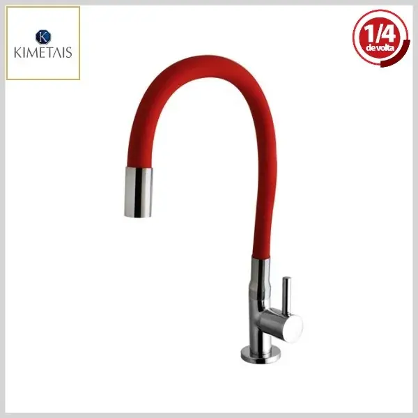 Torneira de Cozinha 1167 C58 Vitacor DelicattaSlim Mesa Bica Flexível 1/4Volta Red/Cromado - Arejador Fixo, Volante Metal - Kimetais - Ref:TR002504