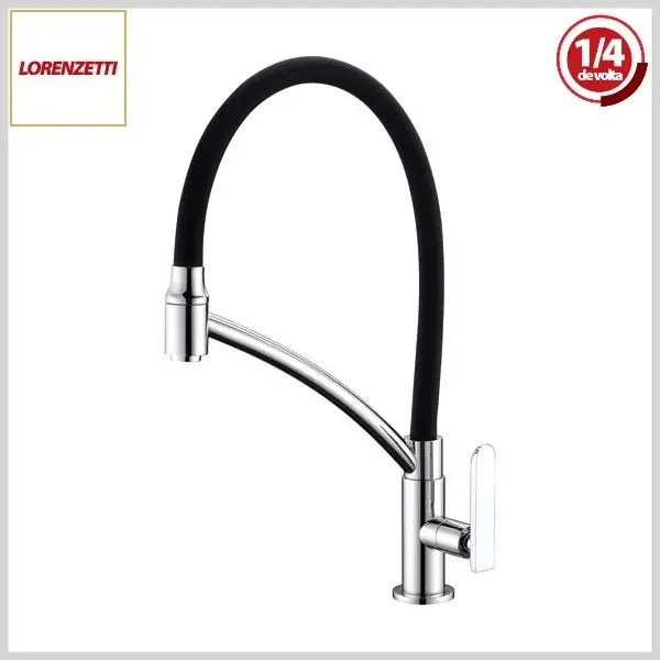 Torneira de Cozinha 1167 C81 LorenChef Mesa Bica Móvel Preto c/Cromado - Vedação ¼Volta, Saída c/Arejador - Lorenzetti - Ref:7048518