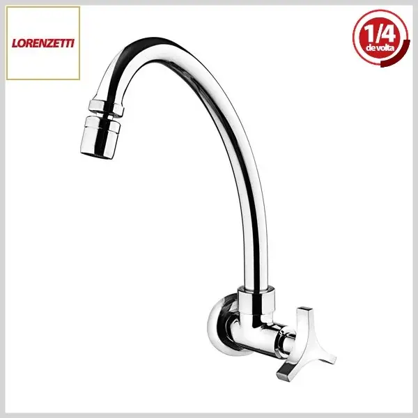 Torneira de Cozinha 1168 C33 LorenTrio Parede Bica Móvel Cromado - Vedação ¼Volta, Arejador Movel - Lorenzetti - Ref:7011190