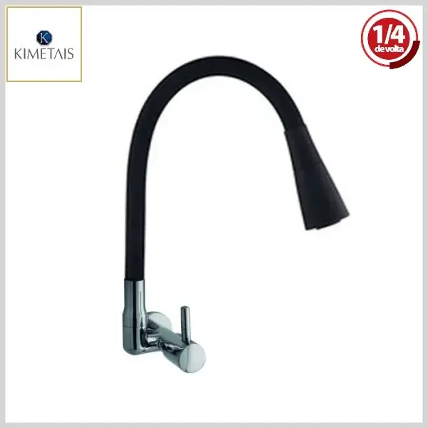 Torneira de Cozinha 1168 C58 Vitacor DuoJet DelicattaSlim Parede Bica Flexível 1/4Volta Black/Cromado - Jato Regulável, Volante Metal - Kimetais - Ref:TR002588