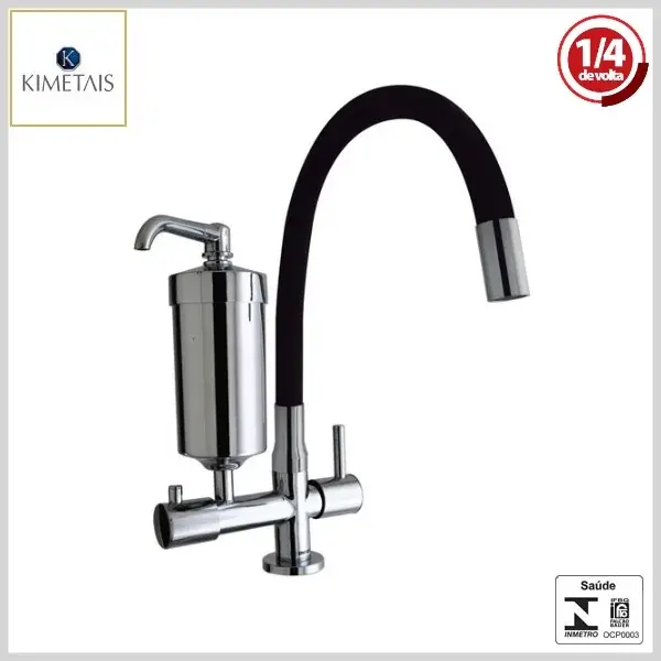 Torneira de Cozinha c/Filtro 1159 C58 Vitacor DelicattaSlim Mesa Bica Flexível 1/4Volta Black/Cromado - Arejador Fixo, Volante Metal - Kimetais - Ref:TR002564