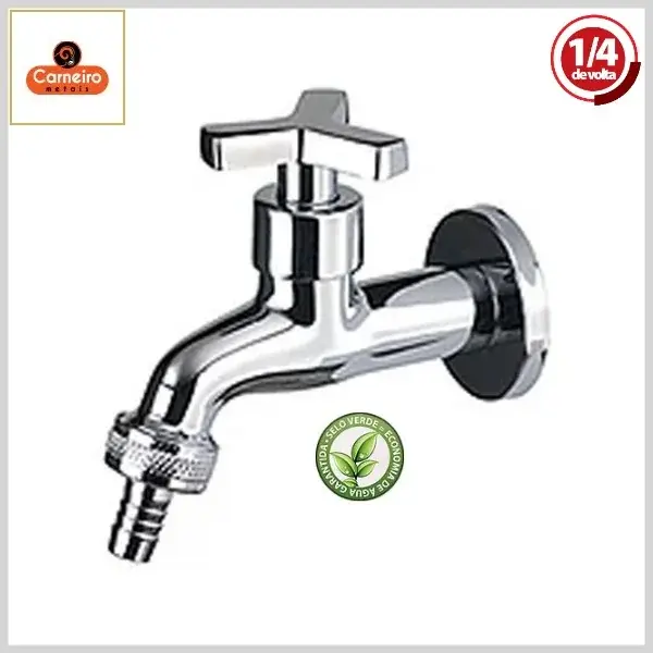 Torneira de Jardim 1130 C25 Yunnan Parede Luxo 1/4Volta Cromado - Saída c/Bico, Volante Metal - Carneiro Metais - Ref:90100010811