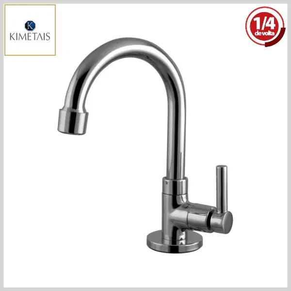 Torneira de Lavatório 1066 C01 Alfa Mesa Bica Alta Móvel 1/4Volta Cromado - Arejador Fixo, Volante Metal - Kimetais - Ref:TR002570