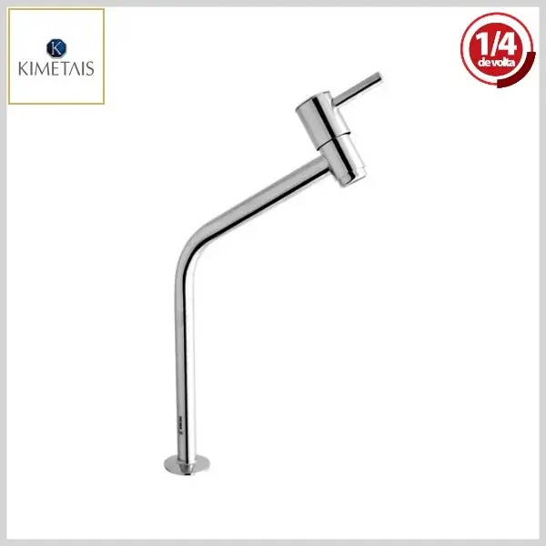 Torneira de Lavatório 1076 C58 DelicattaSlim Mesa Bica Alta 1/4Volta Cromado - Arejador Fixo, Volante Metal - Kimetais - Ref:TR002235