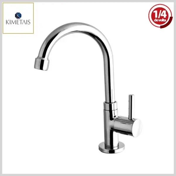 Torneira de Lavatório 1166 C58 DelicattaSlim Mesa Bica Alta Móvel 1/4Volta Cromado - Arejador Fixo, Volante Metal - Kimetais - Ref:TR001909