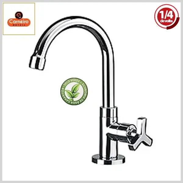 Torneira de Lavatório 1198 C25 Yunnan Mesa Bica Móvel 1/4Volta Cromado - Arejador Fixo, Volante Metal - Carneiro Metais - Ref:90100010815