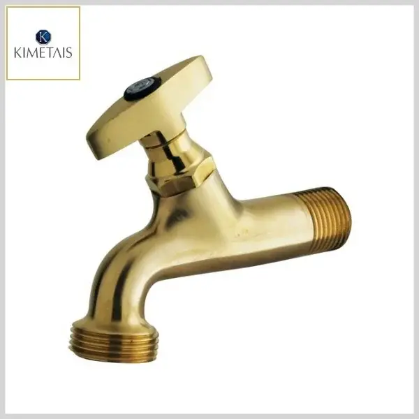 Torneira de Tanque/Jardim 1028 A10 Top Parede 70mm Mvs Dourado - Saída c/Rosca, Volante Metal - Kimetais - Ref:TR000262