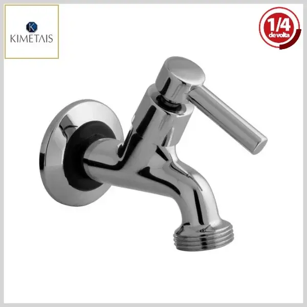Torneira de Tanque/Jardim 1028 C01 Alfa Parede 70mm 1/4Volta Cromado - Saída c/Rosca, Volante Metal - Kimetais - Ref:TR002576